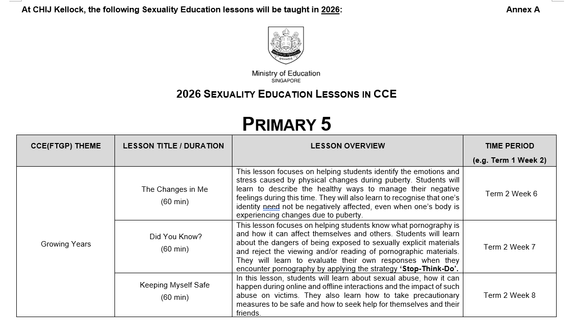You may click here for more information on MOE Sexuality Education.