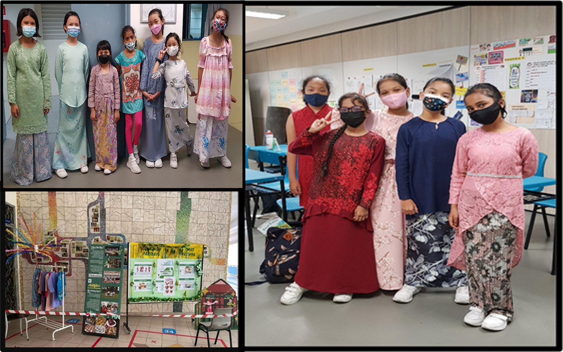 The Malay Department puts up decorations and an information board on Hari Raya celebrations which focus on our Malay traditional costumes, food and delicacies during the Hari Raya festival. We display some samples of baju kurung and baju kebaya, which are the traditional dresses of Malay ladies, at our booth. Our students also have the opportunity to attempt the ‘Let's Celebrate Hari Raya at Kellock’ quiz via the SLS online platform and win tokens for themselves. Writing greeting cards to Muslim friends who celebrate the Hari Raya is another favourite of the girls.